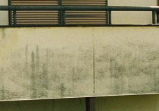 | ●《外壁》かび・藻や汚れが目立つ ひと目でわかる汚染された状態です。かびや藻が発生 するということは壁内に湿気や水分が含まれていると いうことです。美観だけの問題ではなく外壁材その物 の劣化が進んでいることを示します。一般的には8〜 10年目が「塗り替え」の目安とされています。 | ![]() |