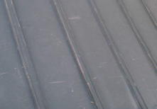 ![]() | ●《屋根》トタン屋根(瓦棒) 塗膜がはがれてサビが発生している状態です。 瓦棒に使用している金属板の厚みは1mmに満たな い材料が一般的で、サビがひどい場合には屋根に 穴が開くこともあります。手遅れにならないよう にサビの発生する前に早めの塗装が必要です。 |